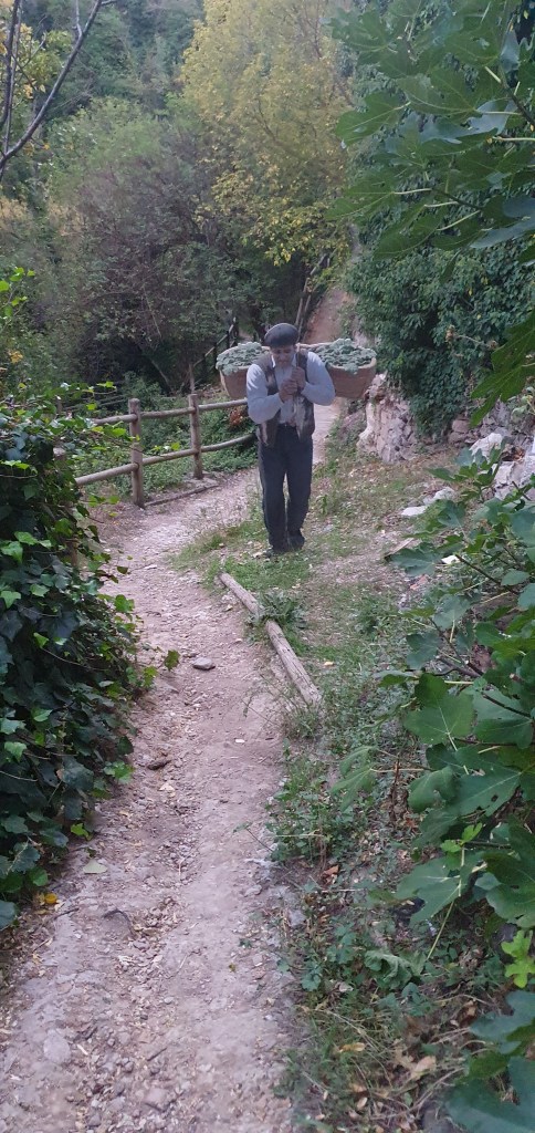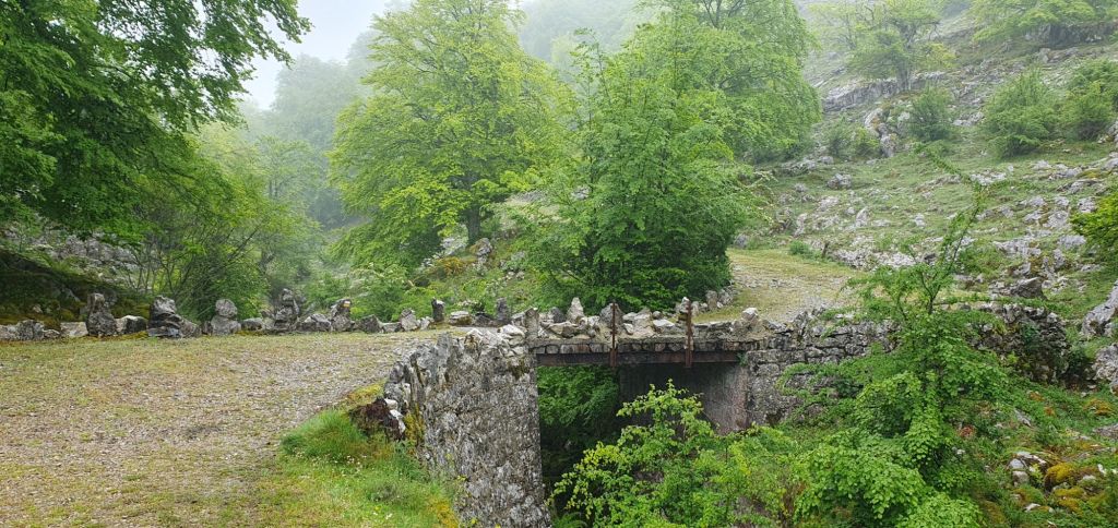 En vandaag probeer ik maar weer eens mijn ‘gouden’ duim uit, maar die blijkt dit keer van ijzer.. Het duurt bijna een uur voordat ik een lift krijg naar Arenas de Cabrales, waar ik twee weken geleden met de bus naartoe reisde. Vandaag komt de bus echter veel later, zodat ik maar weer een ‘auto-stop’ probeer. De Spanjaard vertelt dat de weg verderop is opgebroken (ook al) en dat we een omweg via de berg moeten maken; dat moet de bus ook, begrijp ik min of meer uit zijn rappe Spaans. Bovenop de berg, in een gehucht Alles, zegt hij niet verder te gaan, want hij heeft daar een afspraak.