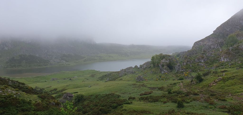 Bulnes is een piepklein pitoresk, maar sinds 2001 flink toeristisch geworden gehucht; ik hoor van een lokale inwoner (één van de ca. 30!) dat men soms naar ‘die oude tijd’ terugverlangt, vanwege de vele rolkoffers die over het karrepad hotsen. Na een grote ‘cafe con leche’ ga ik op pad, met mijn volledige rugzak (waar ik mijzelf enige tijd later om vervl**k: had ik maar wat achter gelaten in het café; ik kom hier toch weer terug). Nu ja, volledig bepakt is wel zo consequent.