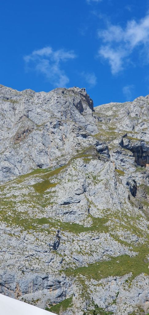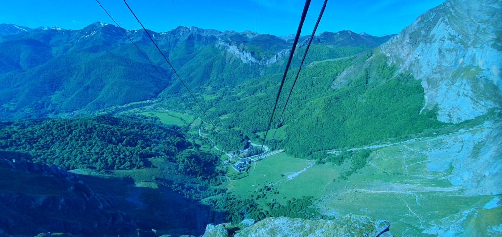 Na mijn terugkeer naar Fuente Dé -met twee maal een ‘Ida’ in de kabelbaan; de baanmedewerker was niet bereid met de ‘heldhaftige’ (of beter: ‘jammerlijke’?) verklaring van mijn terugkeer mij het prijsvoordeel van een ‘Ida y Vuelta’ te gunnen; ‘soit’- verwierp ik direct het idee om terug te keren naar het hotel met de blèrende dreumes. Nee, ik wilde kijken of ik die dag grotendeels kon terugkeren naar het beginpunt van mijn ‘Anillo de los Picos’, in Poncebos, en vandaaruit toch nog Refugio Urriellu te bereiken..