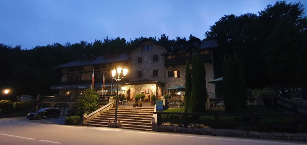 Mijn apotheose? Ik keer voldaan terug in Bulnes en maak gebruik van het retourticket met de tunneltrein naar Poncebos. Een laatste lift (Nederlanders!) naar Arenas de Cabrales, waar ik mijn laatste hotel in de Picos heb geboekt (Hotel de la Rivera; vergeten een foto te nemen). Ik eet in de avondzon op het terras van een leuk restaurant een heerlijke ‘ragút de pitu con setas y hongos’ (de paddestoelen komen helaas niet uit deze regio, maar uit Burgos) en schrijf er mijn vorige blogbericht.