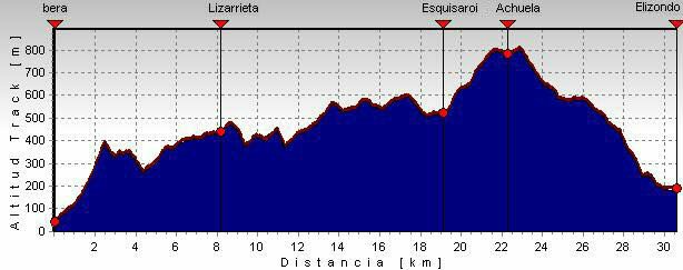 Eerst door het dorpje Bera, dat nog in diepe rust is, maar al vrij snel klimt het pad uit het dorp de Baskische heuvels in. De eerste drie uur is het nog bewolkt, bijna mistig, en dat loopt heerlijk. Op een kruising van paden, precies op de grens van Spanje en Frankrijk, bij een heerlijke bar/restaurant (N 43°15.644′ , W 001°37.168′), waar het terras net wordt klaargemaakt (picknicktafels en parasols, net wintersport), breekt de zon door. Wow, een heerlijke plek voor xixtorra met friet en een bocadillo con queso y huevos..