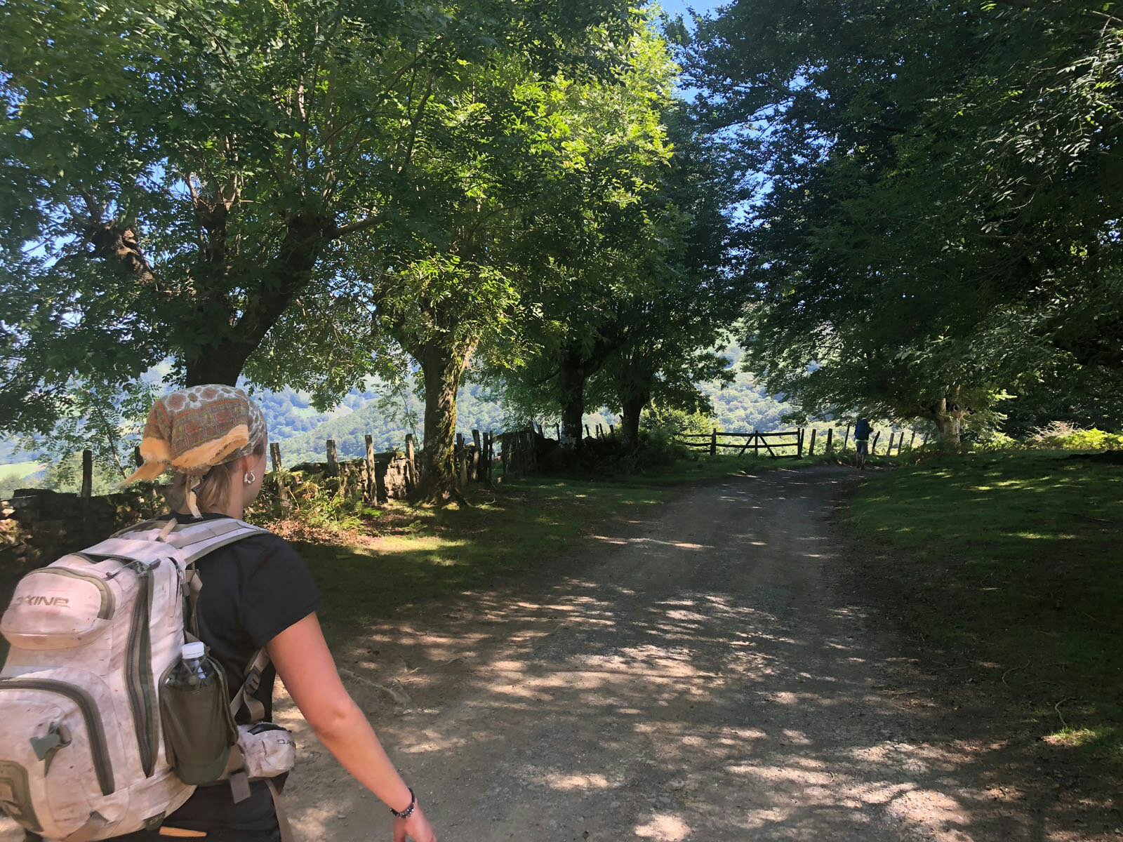 Verzadigd vervolgen we de tocht, maar inmiddels nu in verzengende hitte. Gelukkig lopen we grotendeels door een Tolkien-achtig bos, dus ontvangen we schaduw van geheimzinnige bomen, die ons gade slaan en onze verstoring nog net tolereren.