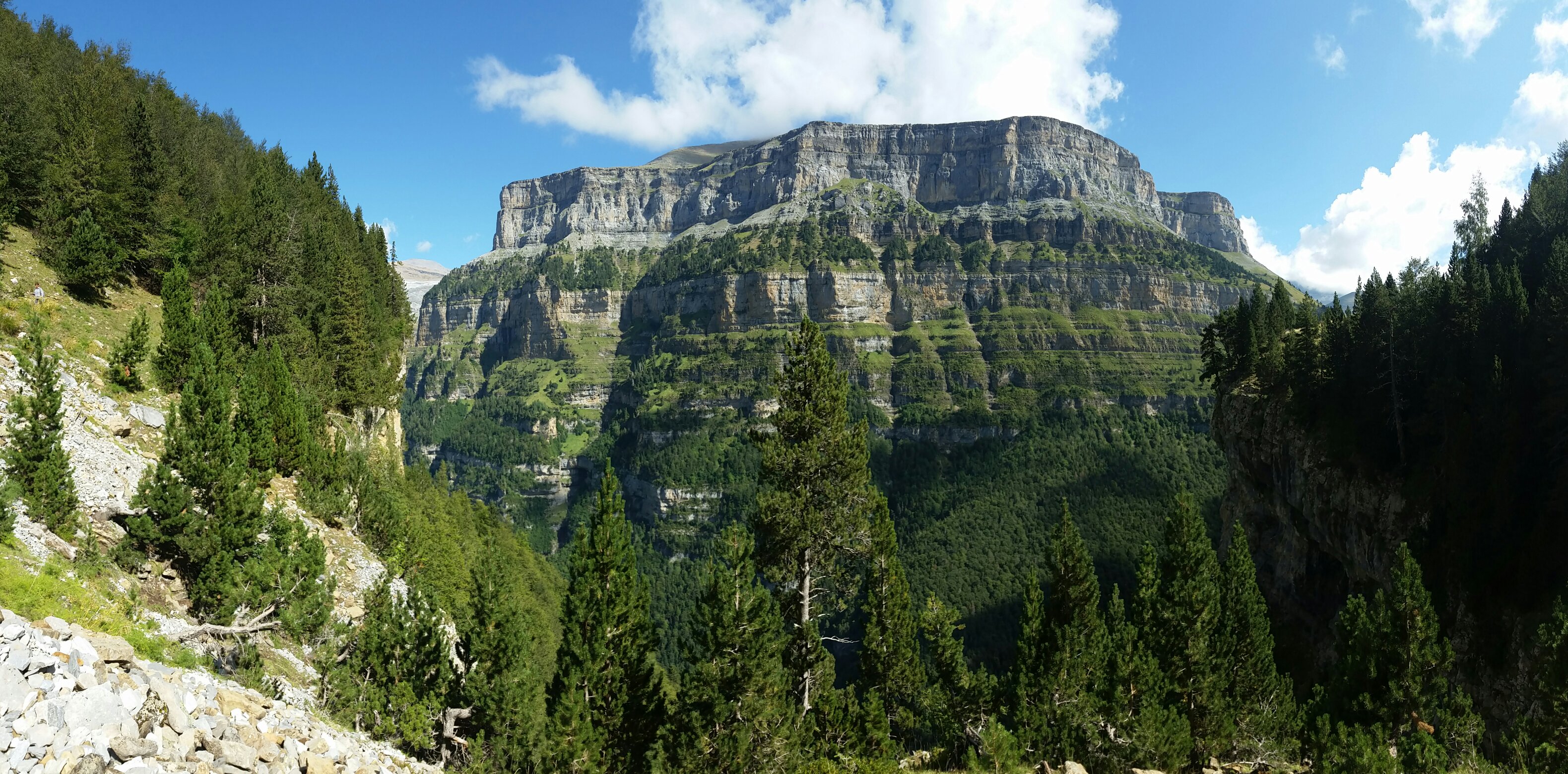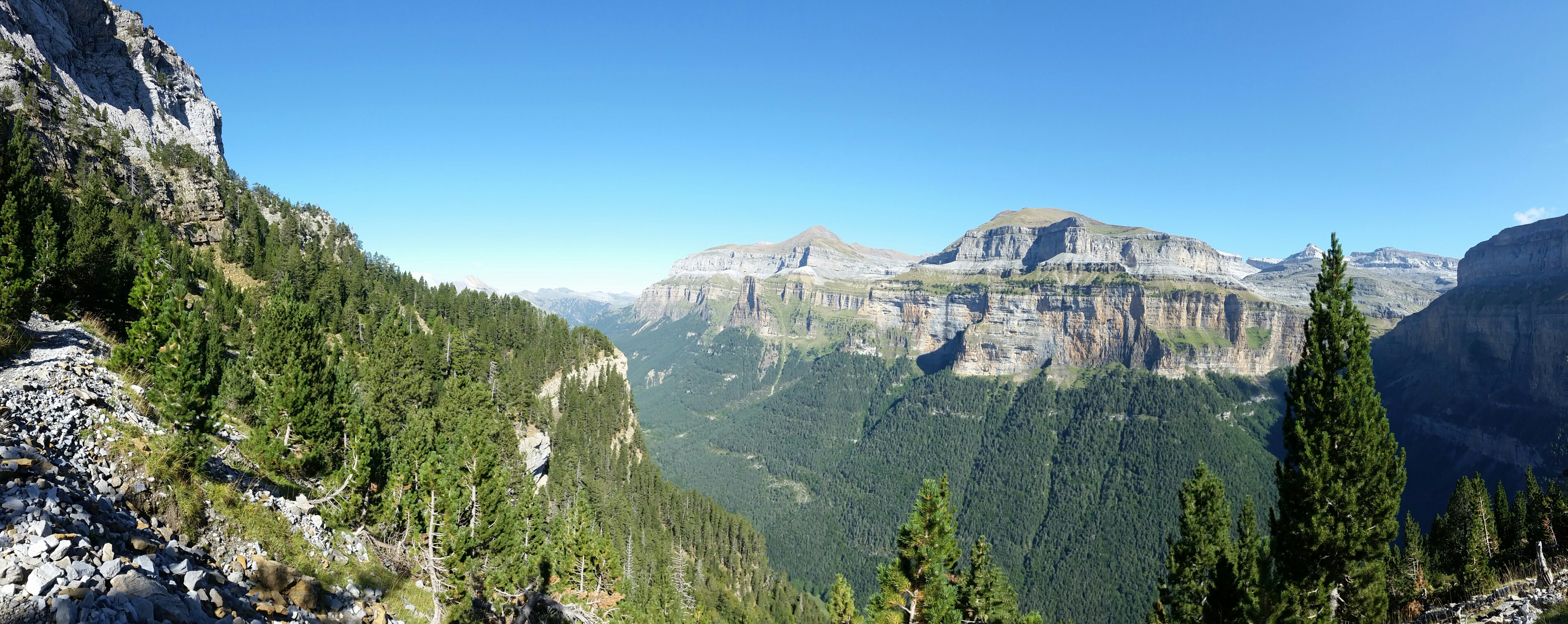 Het is ongeveer 35 jaar geleden dat M en ik door het slechte weer in de Franse Pyreneeën eigenlijk bij toeval in het Parque Nacional de Ordesa y Monte Perdido terecht kwamen. Bijna weggeregend in het Franse Gavarnie (van het Cirque) reden we door een lange tunnel, om bij Bielsa in de ruige, kale bergen aan de Spaanse kant van het bergmassief terecht te komen.