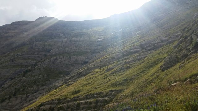 Als we de kam passeren komen we in een prachtige valei, met groepjes bomen en alle soorten groen die je kan bedenken. Alber wijst me op mooie rode bessen…. die zeer giftig zijn (familie van de ‘nachtschades’). We praten over ‘Into the wild’, het boek -en de film- over de jongen die het eten van deze bessen fataal werd. En over ‘A walk in the woods’ van Bill Bryson’. Allemaal onderwerpen die passen bij dit landschap.