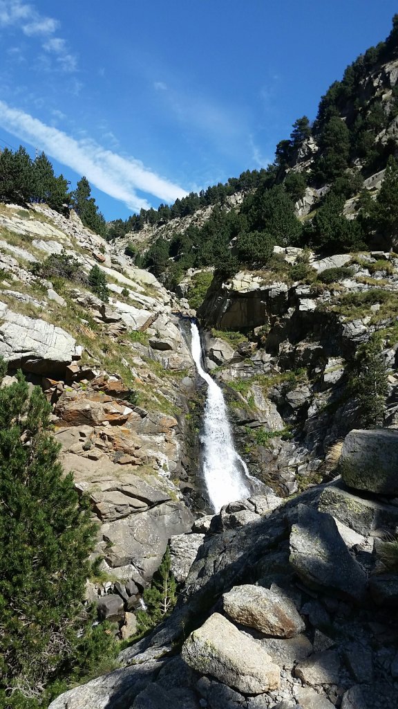 Na een heerlijke overnachting in een casita in Queralbs, halverwege etappe 37, en een slaapstop in Núria, een ietwat pompeus heiligdom aan het einde van dezelfde etappe: een enorme kerk -bijna cathedraal- en een groot hotel (’s zomers ezeltochtjes en bootje-varen op het kleine stuwmeer voor het complex; ’s winters ski-resort, met een beperkt aantal liften; wat je al niet met het geloof kan combineren…), vertrekken we richting de twee hoge cols van vandaag: de col de noufonts en de col de noucreus, beide ca. 2.780m hoogte.