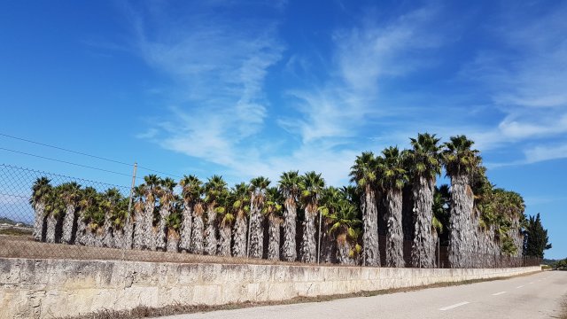 Vanzelfsprekend staat Mallorca ook vol met palmen, vele dadelpalmen, prachtige exemplaren met zware ‘rokken’ van oude bladeren, of schoongekapt (een professie op zich!) tot een gladde stam, soms met bovenin nog een ‘ananas’, die ontstaat als de uitgebloeide bladeren niet helemaal worden weggesneden (ik moet er nog een foto van maken).