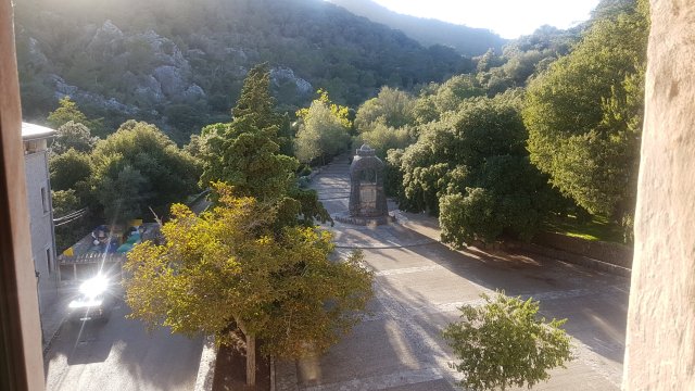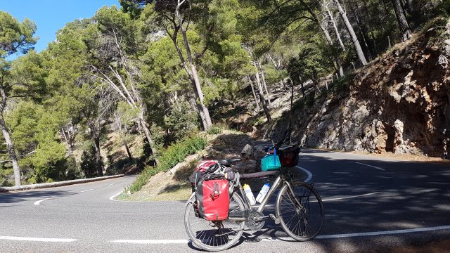 En vandaag fietste ik naar het Sanctuari de Lluc, een klooster in de bergen van de Serra de Tramuntana, dat ik eerder heb bezocht tijdens mijn reis met rode K. en S. Een tocht met talloze haarspeldbochten en een gemiddeld stijgingspercentage van 8%. Grote groepen wielrenners kwamen mij in hun afdaling tegemoet, ongetwijfeld met een vaartje van 50 km/u of meer.