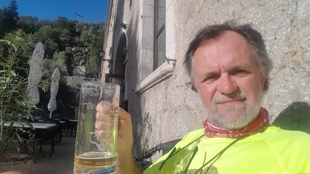 Maar na 10 km is daar de beloning: monikkenbier na het gelijknamige werk smaakt heerlijk. In de overdadige zon op het terras van het kloosterrestaurant kom ik helemaal bij.