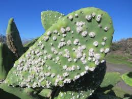 Een lokale bewoner op het vasteland liet mij een keer zien wat er in dat witte spinsel zit: een paarsrode kleurstof, die vroeger werd ‘geoogst’, maar die gewoonte is inmiddels in onbruik geraakt door synthetische kleurstoffen. De luis zorgt er -onbestreden- overigens wel voor dat de cactus bezwijkt of in ieder geval wegkwijnt. Zo is dat te zien aan de oostkust, heel triest: oeroude cactussen met hangende en verlepte schijven. Hier gelukkig niet!