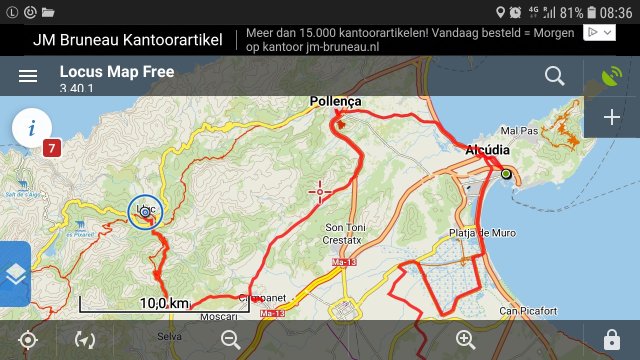 Mallorca, dus. Onaangetast, maar wel geïnfecteerd door een andere ‘plaag’. Toeristen… Zoals ik! Inmiddels ben ik gestopt om medefietsers in het Spaans te begroeten, want het zijn voor 99% Duitsers of Engelsen. Er worden veel reizen georganiseerd, waarbij je met gehuurde fiets, onder begeleiding, race/sport-fietstochten kan maken maken. Dat is natuurlijk heel sportief en zoals ik al eerder opmerkte is de gemiddelde leeftijd van die in strak tenue gestoken fietsers zo tussen de 60 en de 70! Met recht en respect: krasse knarren (hoewel ik er dus nèt één van geworden ben…).