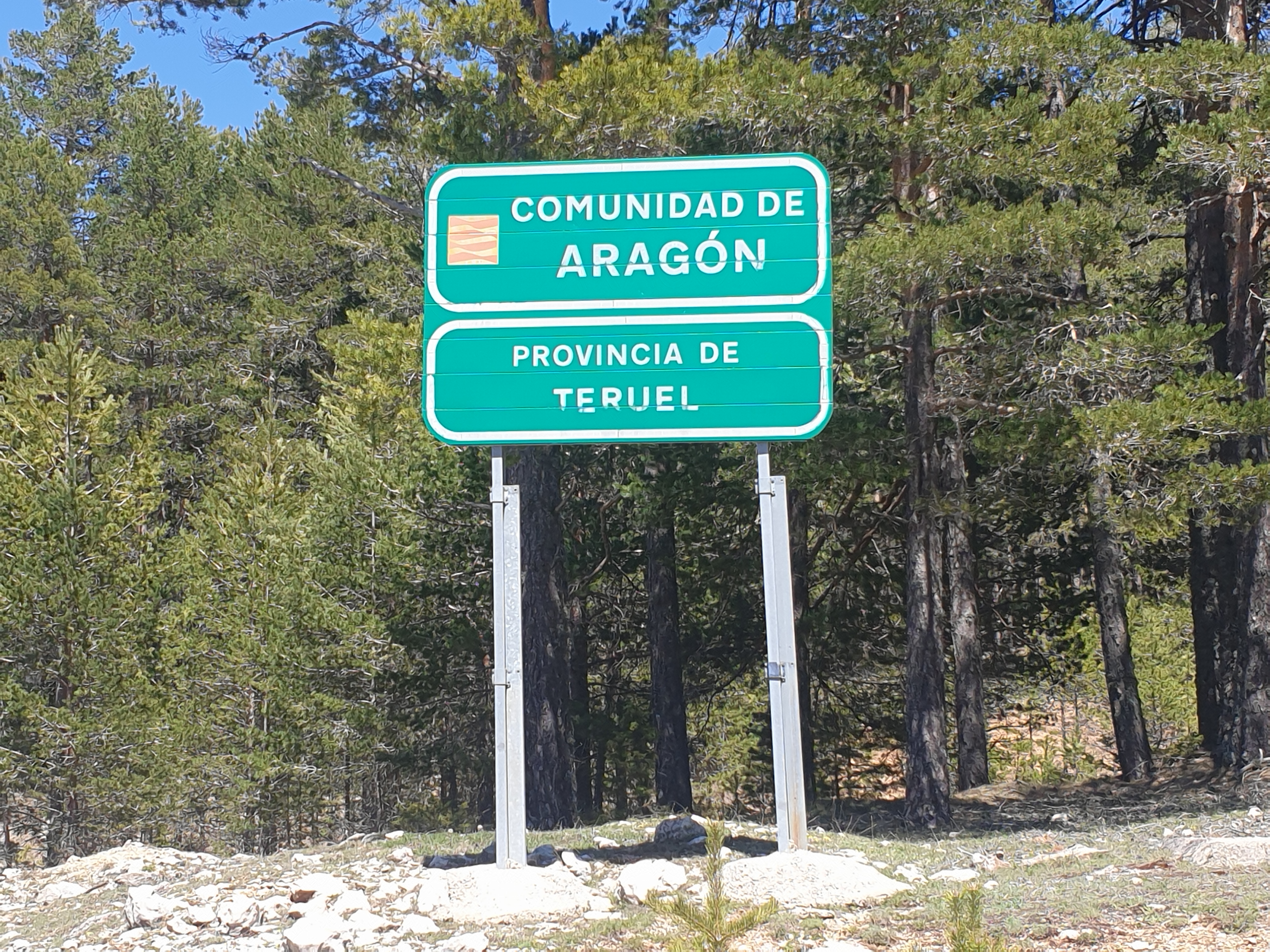 In pension Alto Tajo (oud, maar prima en met een vriendelijk dame achter de bar) kijk ik nog eens naar de kaart. Het pension ligt net buiten het dorp aan een kleine weg die het bos induikt. Niet de route die ik zou moeten volgen… maar wel een interessant weggetje, dat volgens de kaart zelfs een kortere doorsteek door Aragon betekent, maar duidelijk minder ‘exposed’.