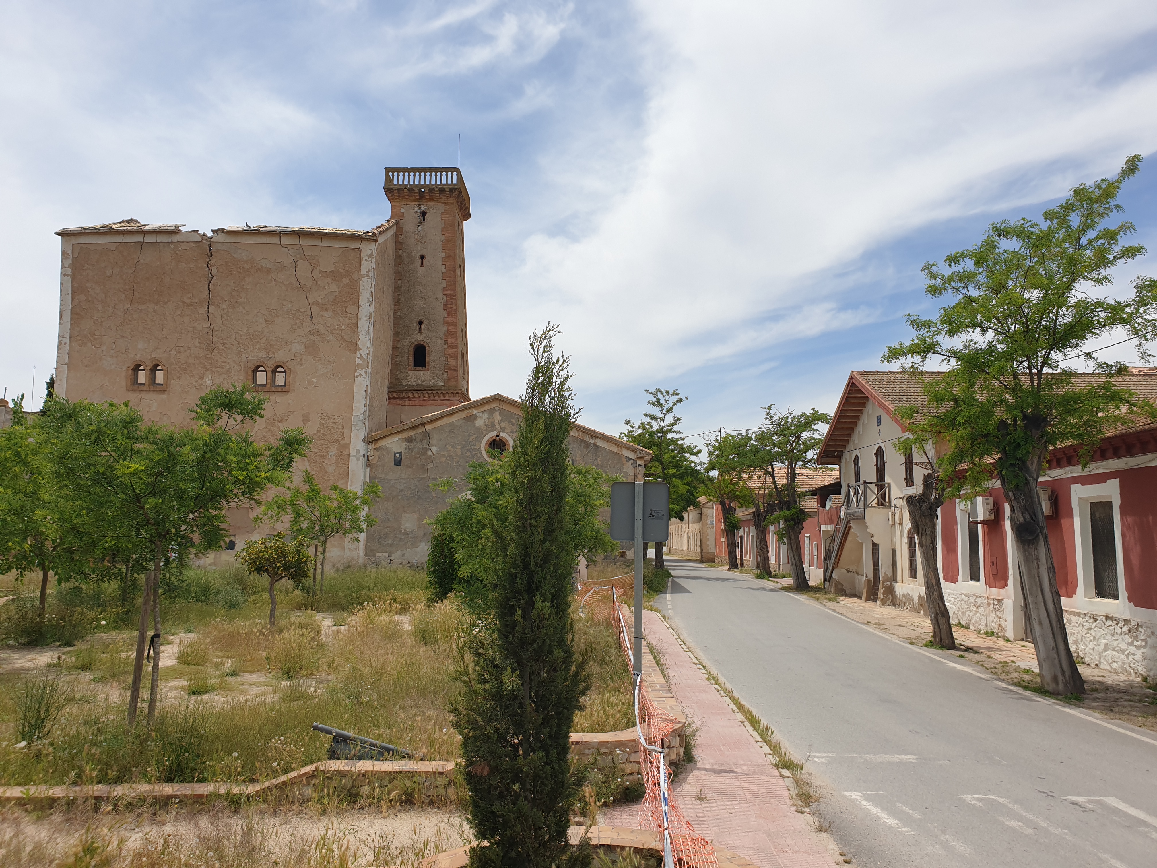Iets ten zuiden van Villena stuit ik op een ander bijzonder fenomeen: een vrijwel verlaten gehucht Santa Eulalia, met een paar oude fabrieksgebouwen, enkele in een soort ‘grote hofjes’ gebouwde huizen, een fraai klein kerkje en nog wat gebouwen, waarvan één met het opschrift ‘Casinete’, een gokpaleis(je). Het onkruid weelt er tierig, alsof het na een kernramp allengs is verlaten. Hier en daar rood-witte afsluit linten, maar gek geneg om de wild begroeide parkjes gespannen en niet om de bouwvallige bouwsels. Een vreemde, verlaten sfeer, terwijl ik hier en daar toch wat mensenstemmen hoor uit de enkele nog bewoonbare huizen.