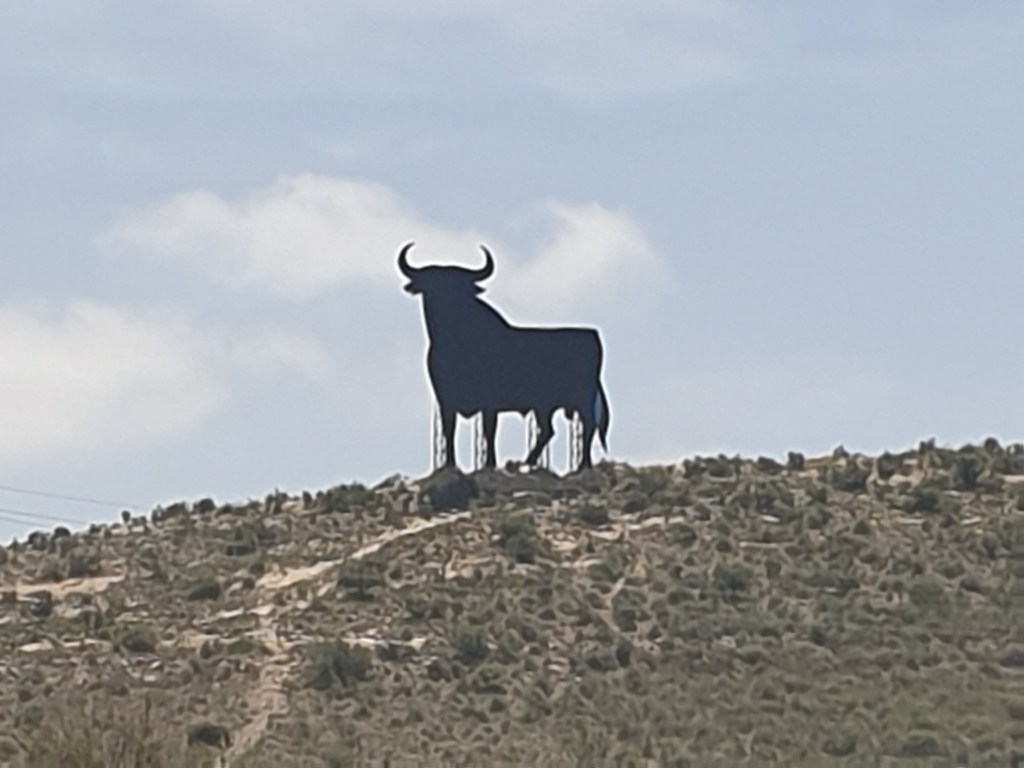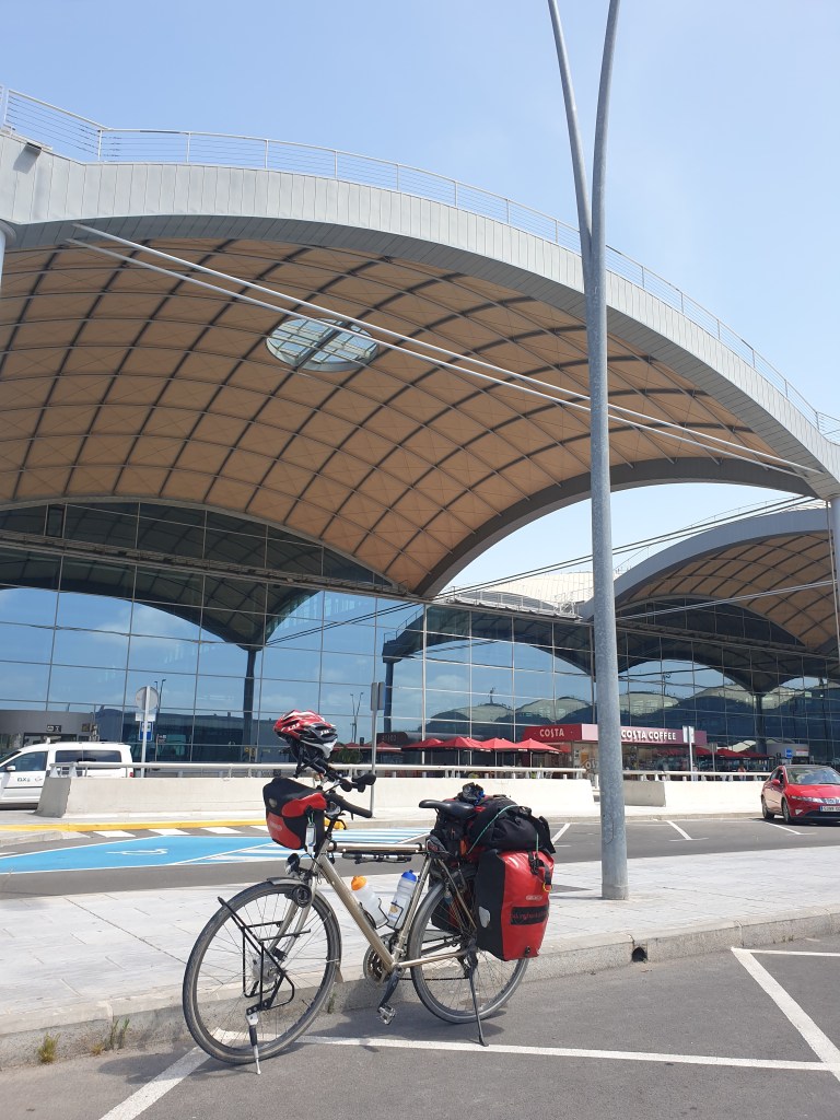En zo, na nog een foto te hebben gemaakt van de stoere Spaanse identiteit die je ook vaak als sticker achterop op auto’s van ANWB-leden treft, die dit land met de auto hebben bezocht (en die ook verwijst naar een drankje dat volgens mij niemand meer lekker vindt, buiten de mensen in het Verenigd Koninkrijk; maar díe inwoners houden van de vreemdste dingen, zoals het afscheiders betaamt..), fiets ik gemoedelijk de ‘Salidas’-oprit van het vliegveld op, even zigzaggend om de parkeerpaal waarvoor ik geen kaartje hoef te trekken.