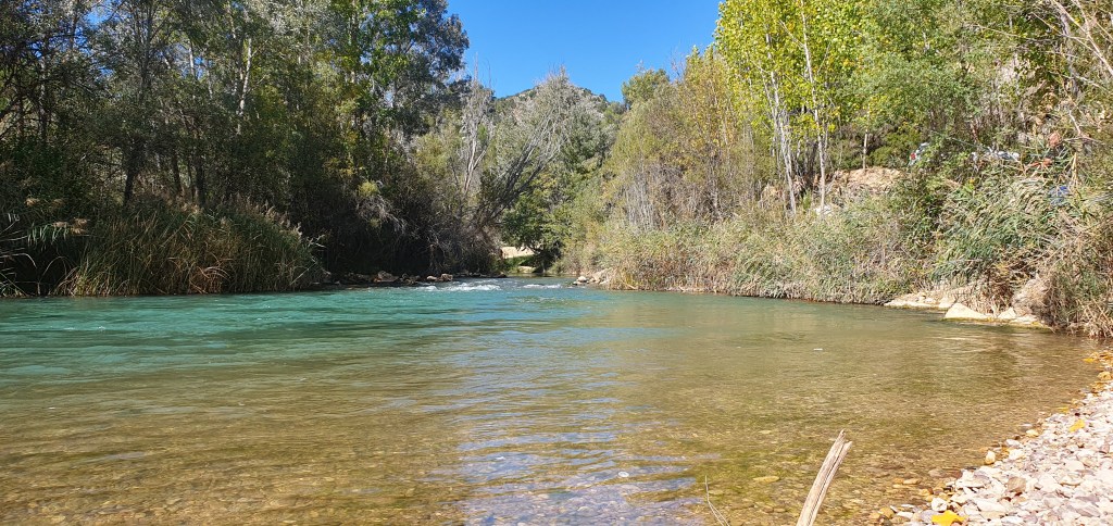 Morgen naar Uña, bekend terrein, aan het fraaie laguna de Uña. De weersvoorspelling? 25-30° strakblauw, geen wind. Lang leve de klimaatverandering (NB: dit is ironisch bedoeld).
