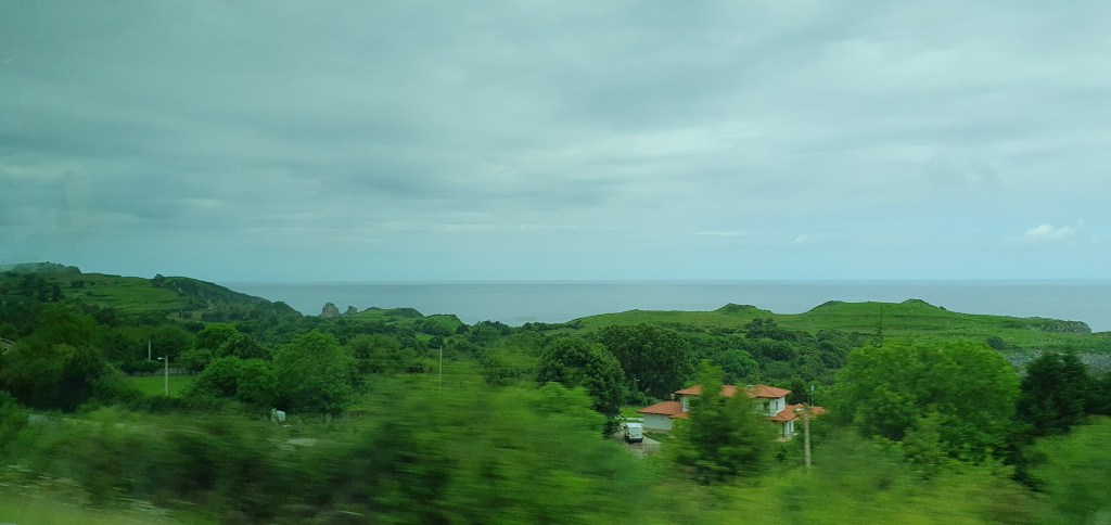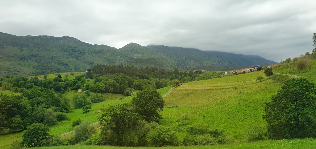 Met recht zijn de Picos imposante toppen, die in de aanloop van het gebergte al behoorlijk stijl uit de zee rijzen. De busreis naar Arenas is al een avontuur op zich; hoe Alsa het kostendekkend weet te houden, weet ik niet, maar in de 3,5 uur (met tussenstop in Llanes) zitten tijdens het eerste deel nog flink wat schoolkinderen in de bus (bijna oordoppen nodig; wat een ongelofelijk kabaal! 🥴), maar het grootste deel van de rit zit ik in m’n eentje in een gigantische bus, die zich over de smalste weggetjes wurmt, zó smal dat de bus regelmatig stapvoets tussen berghuisjes moet rijden, met aan de ene kant een centimeter van een dakgoot verwijderd en aan de andere kant, ik schat, 1,5 cm van een muur. Op één punt reed de bus eerst frontaal richting de muur van een huis, om vervolgens, met wat heen en weer steken, diezelfde muur te ronden. Tegenliggers moeten zich bergen, want de bus heeft haast; en als een onfortuinlijke mobilist ons tegemoet rijdt, wordt deze onverbiddelijk de berm in ge’hola’d. Gelukkig maar dat ik hier op dit moment niet op de fiets zit, want zoals ik al eens eerder heb vermeld: openbaar vervoer is dan je ergste vijand. Maar nú trek ik, in mijn Alsa-capsule, even aan het langste eind! …maar ik heb toch maar even mijn heupgordel omgedaan.