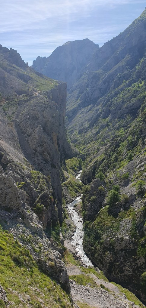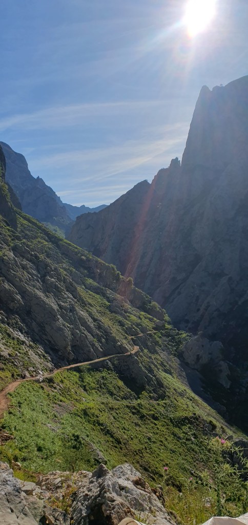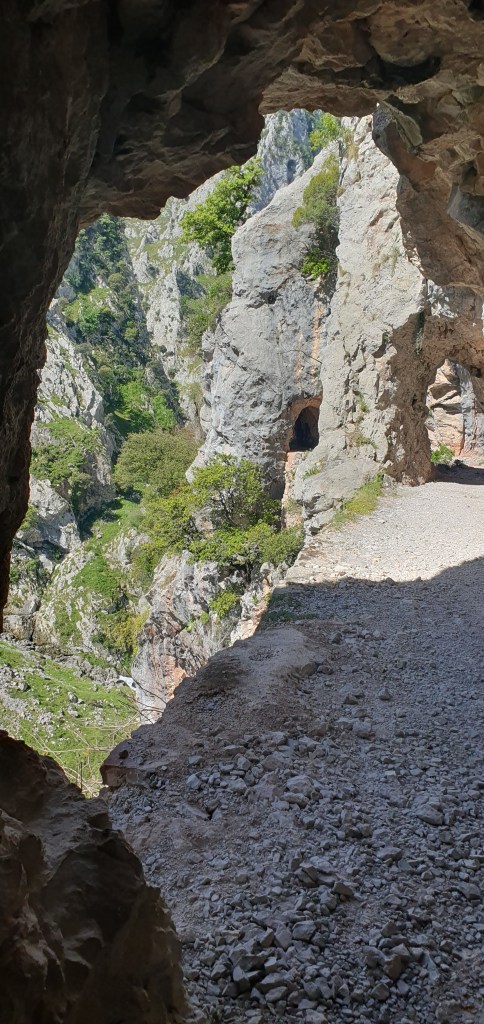 De rivier de Cares heeft zich gedurende miljoenen jaren door het kalkgesteente ‘gevreten’, met een zeer diepe en op sommige plaatsen bijzonder smalle kloof. Imposanter is echter het werk dat arbeiders jaren geleden hebben gerealiseerd: een hoger gelegen tunnel- en kanaalsysteem waarmee het snelstromende water uiteindelijk naar turbines wordt geleid en -ongetwijfeld- oneindig veel energie opwekt.