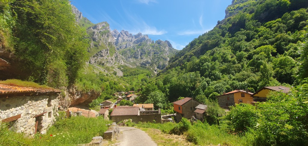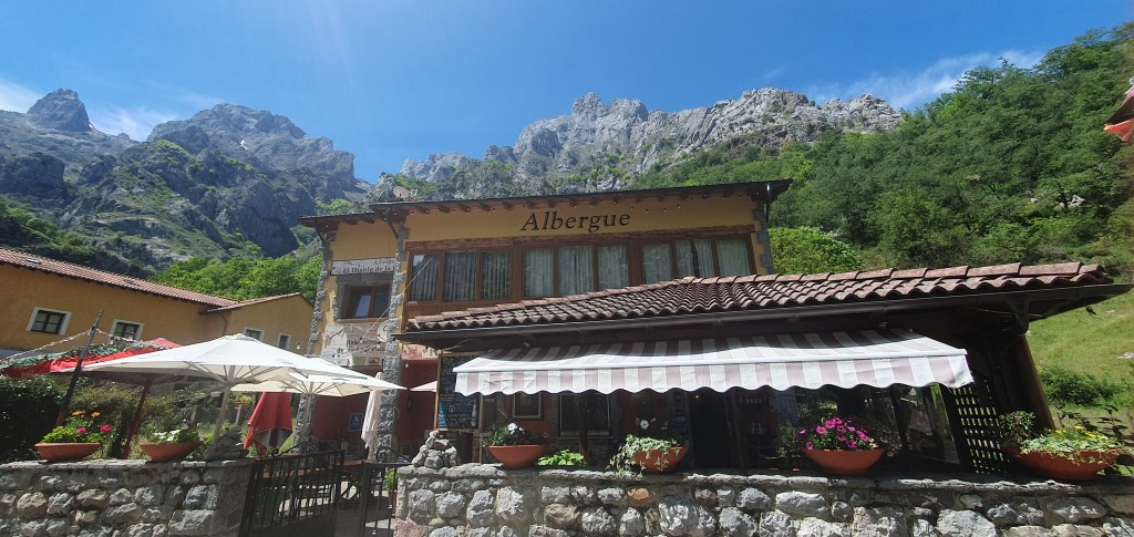 De overnachting in Poncebos was aangenaam. Gisteravond was het volle bak met een groep van ca. 20 Fransen. Gelukkig kon ik mijn maaltijd iets eerder bestellen, want anders had het lang geduurd, met die groep ‘culinaire connaisseurs’. Mijn menu bestond uit asperges vooraf (!) en lokaal gevangen forel daarna. Heerlijk, ‘chapeau’ voor de kok (maar dat heb ik de Fransen niet horen zeggen).