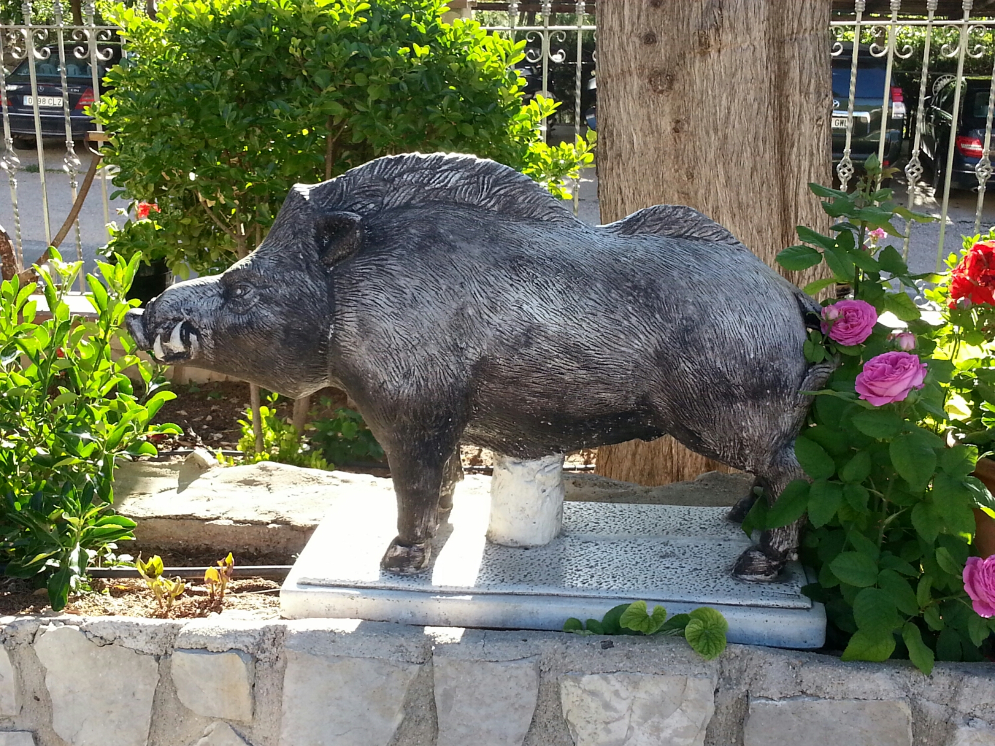 9 Mei, strakblauw, zon, >30¤. 84km gefietst. Zware dag vandaag. Een flink stuk van de route over een onverhard bergpad, flink stijgend. Het is volgens Benjaminse de ‘pittige’ variant, maar wel de mooiste en over stille weggetjes zonder verkeer. Dat laatste kan ik beamen: ik kom een enkele local tegen die naar een afgelegen olijfbomenveld rijdt. Verder word ik af en toe achterna gezeten door kleine kef- en bijthondjes. Ofwel even stilstaan en terugblaffen, danwel met de linker- of rechtervoet een trapbeweging maken, waarna ze verschrikt afdruipen (het waren er vandaag vier die me belaagden!). Gelukkig zijn de echt serieuze waakhonden doorgaans kettinghonden en, hoe zielig ook, ik ben dolblij dat die niet loslopen! Of ze stormen woest op je af, maar dankzij een stevig hek kan ik een dikke neus naar ze optrekken. 😀
