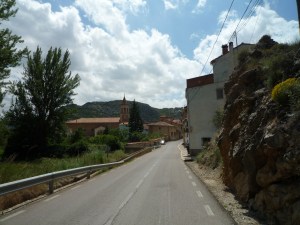 Na de bijzondere ervaring in Aliaga is het even wennen om verder te fietsen, temeer daar ik heb besloten om mijn tocht af te breken. Ik ga nog wel naar Teruel, hoofdstad van de gelijknamige provincie, maar omdat het gisteren in Aliaga wat later is geworden doe ik die etappe niet in één keer. Ik slaap in Cedrillas: Hostal Ramiro (40.4377 -0.8488). Onderweg passeer ik nog een colletje, waar een bord naar een skigebied verwijst.. Dat verwacht je hier met 35¤ niet zo snel. Maar het valt mij op dat op deze hoogvlakte grote houten hekken staan, ca. 40-60 meter van de weg verwijderd en niet continu, maar op bepaalde plaatsen. Ik vermoed dat in de winter de sneeuw hier behoorlijk kan stuiven en dat de hekken dat moeten tegenhouden, maar zeker weten doe ik het niet. Op de col stopt ook een motorrijder; hij maakt een foto van zichzelf en ik loop naar hem toe om hem met motor en col-bord te vereeuwigen. Hij rijdt alle cols in Spanje af om deze vast te leggen.. Een mooie hobby, want dan ben je wel even bezig! Maar liever niet op de fiets…